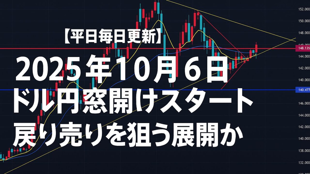 【平日毎日更新】2025年10月6日 ドル円窓開けスタート 戻り売りを狙う展開か