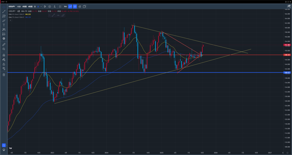 152円割れがあれば一時的に利確が進む可能性もあるが、149.50〜150.00円ゾーンまでは強い買い意欲が見込まれる。