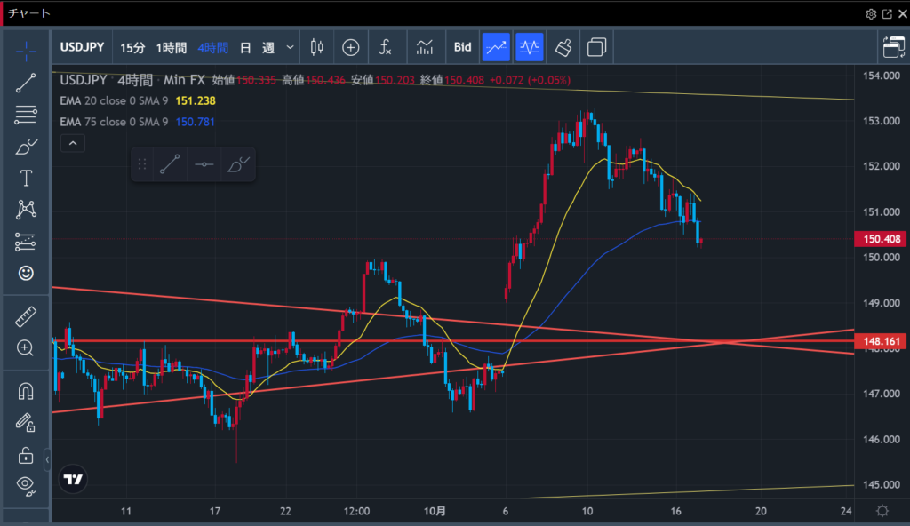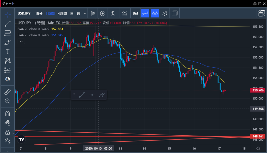 ただし、149.5円付近にはサポートラインが控えており、反発の初動が出る可能性も。