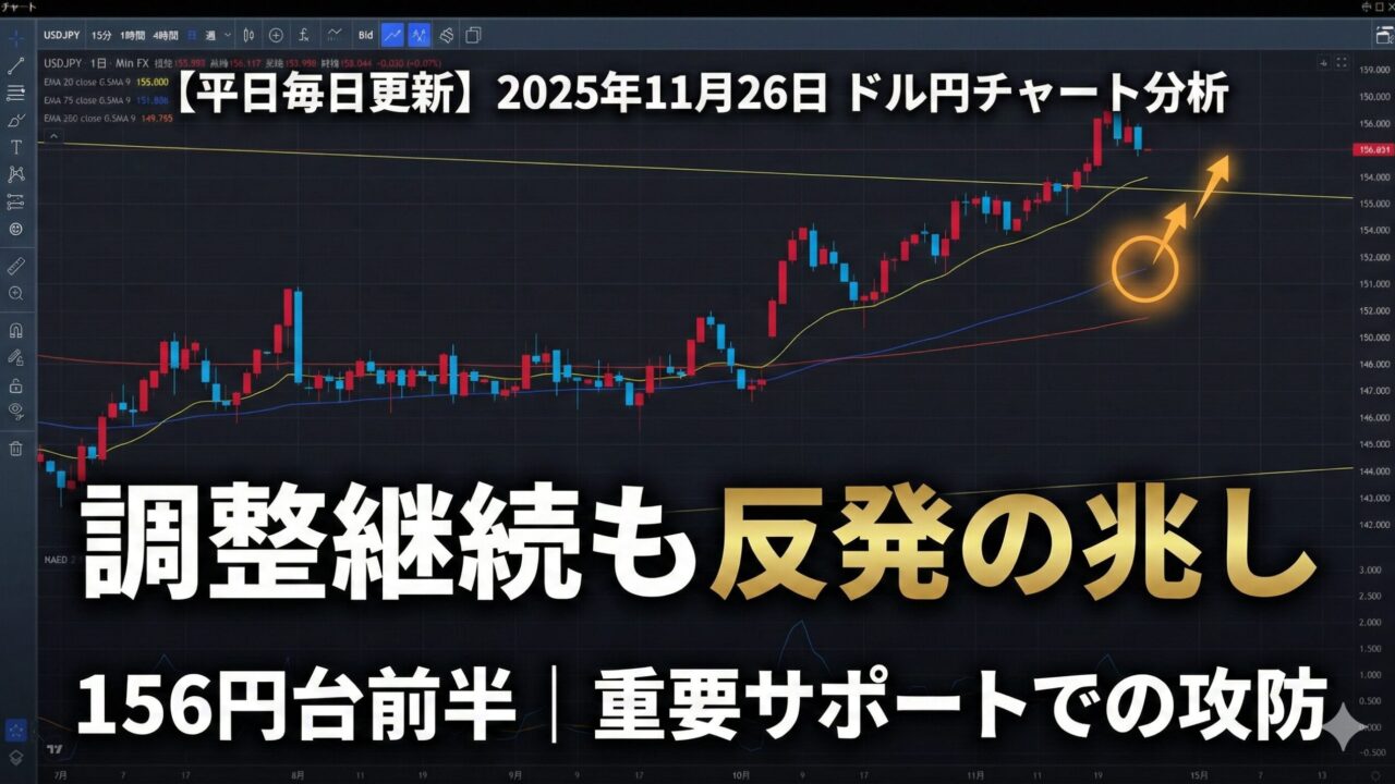 【平日毎日更新】2025年11月26日 ドル円156円台前半 調整継続も反発の兆しか