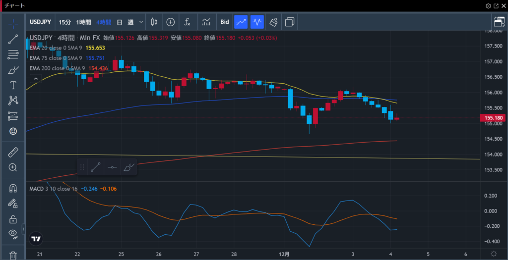 155.10付近まで押し込まれたものの、日足レベルのサポートラインが機能し、V字に近い形で回復している。 市場心理は「売り」から再び「押し目買い」へとシフトした。