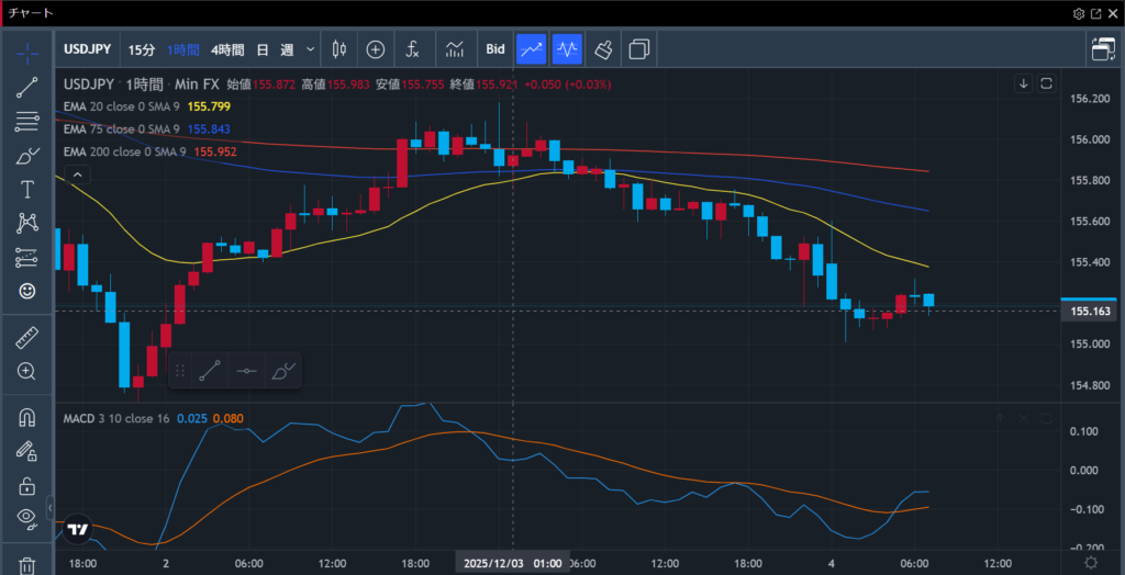 木曜日、ドル円は155円台前半での底堅さを確認し、155.80〜155.90付近まで値を戻している。昨日の記事で指摘した「調整からの反発」が現実となり、短期的な下落トレンドから上昇回帰への転換点(ピボット)を迎えている。