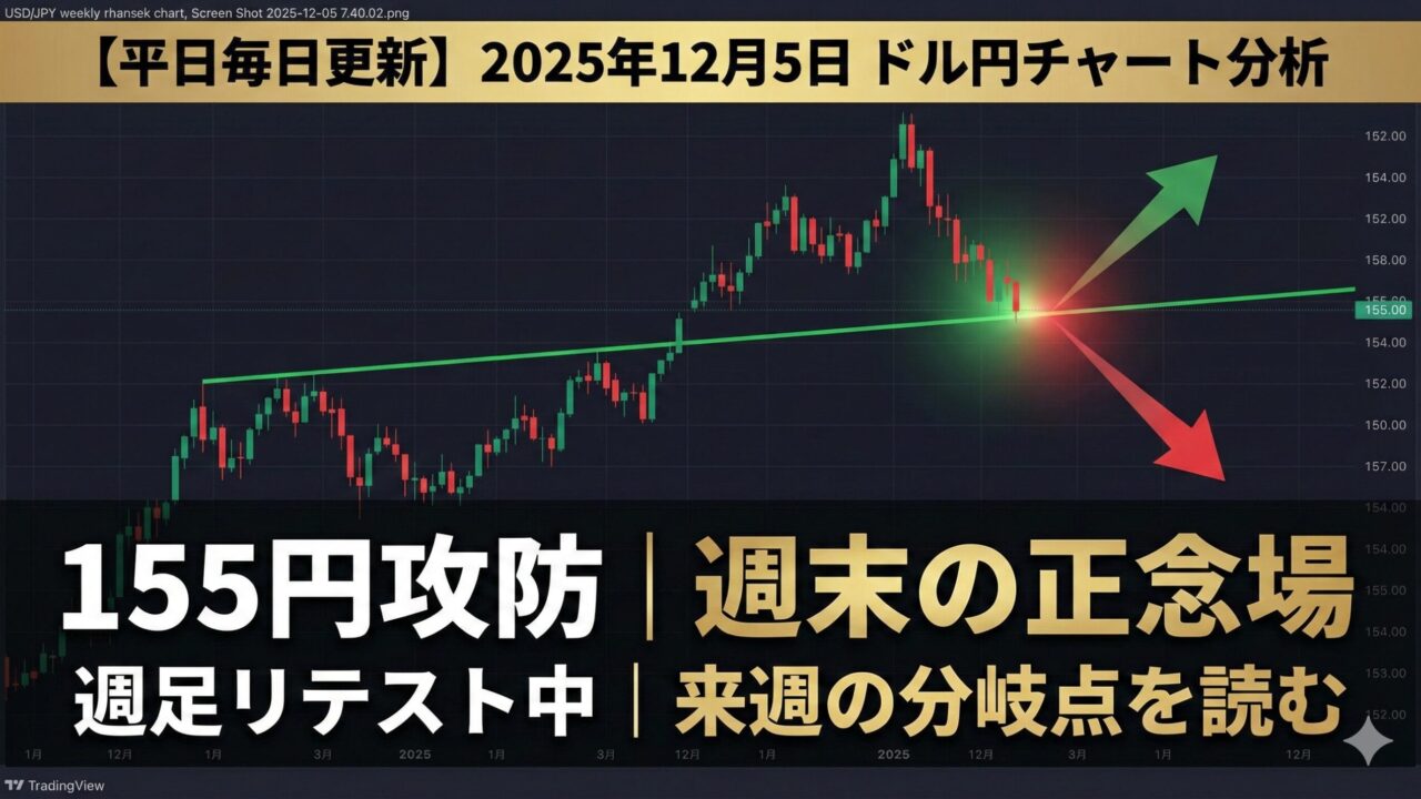 サラリーマン・兼業トレーダーは、今週末はこの「155円攻防」の結果だけを確認すればよい。来週、方向性が定まってから動くのが、最も効率的かつ安全な戦略だ。