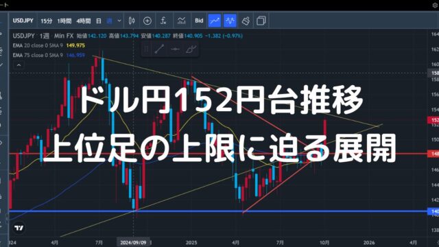 【平日毎日更新】2025年10月9日 ドル円152円台推移 上位足の上限に迫る展開