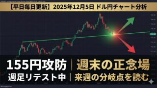 【平日毎日更新】2025年12月5日 ドル円155円攻防 週末のサポレジ転換確認が鍵